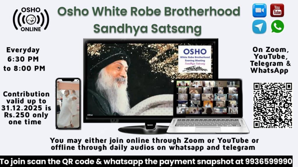 You can now participate in the OSHO sandhya satsang that is streamed daily on Zoom and YouTube.